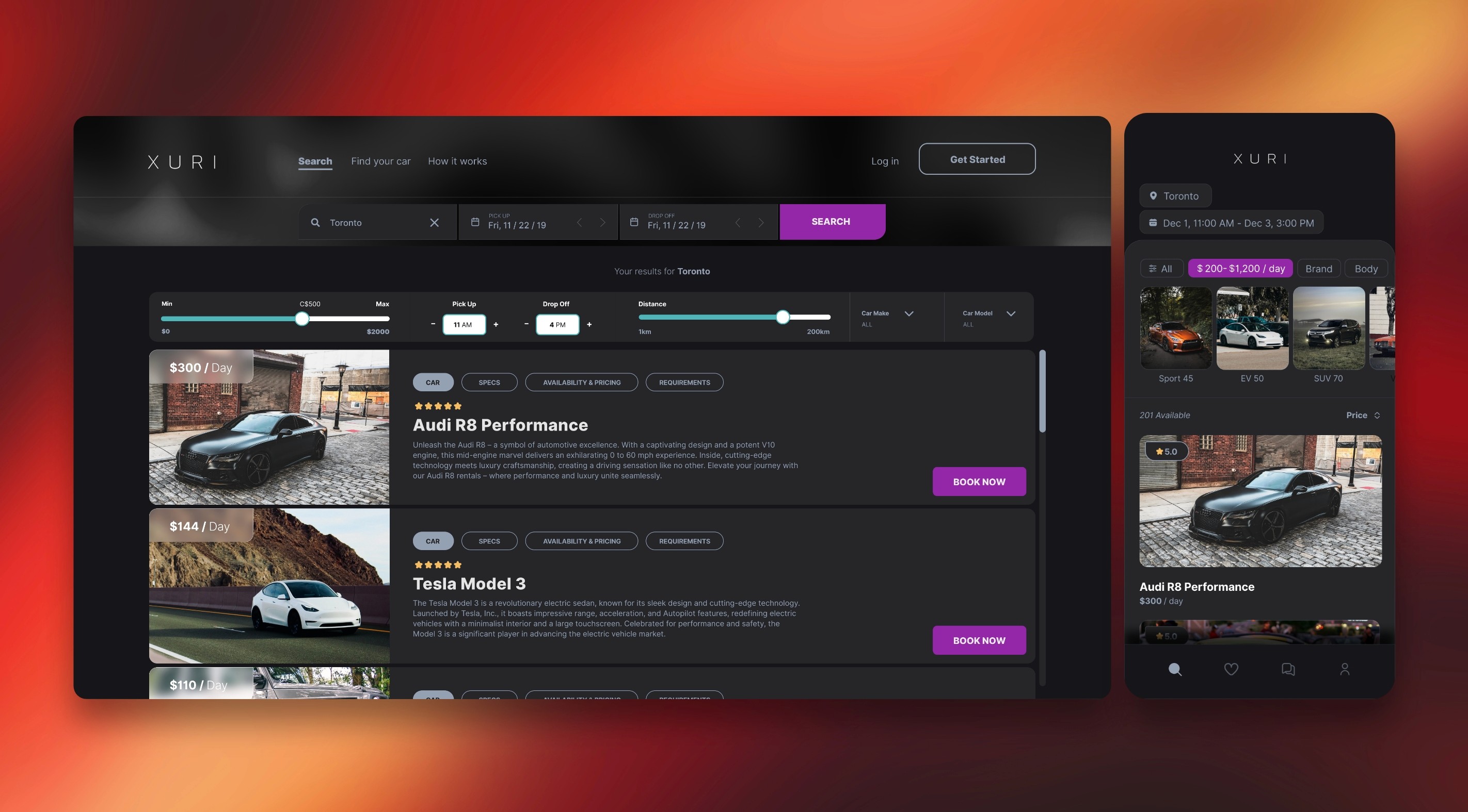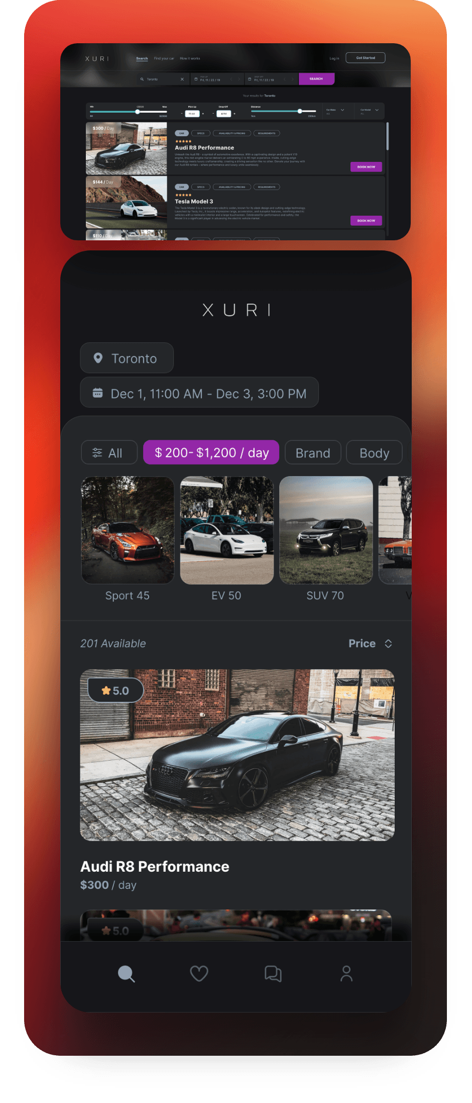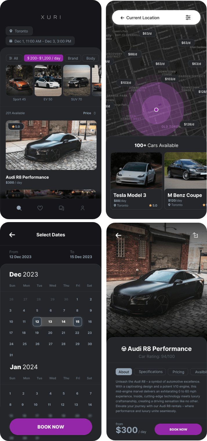 The client sought a dark theme with a clean and elegant look to align with the brand's identity of sophistication and exclusivity. They aimed to create an immersive user experience that exuded luxury and refinement. The dark color scheme was chosen to evoke a sense of opulence while providing a visually appealing backdrop for showcasing high-end car rentals. Additionally, the sleek and minimalist design allowed the focus to remain on the premium features and services offered by the app, enhancing user engagement and satisfaction.